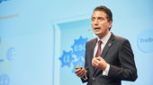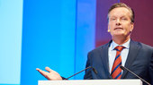 Sigmar GabrielNachhaltigkeit muss sozial verträglich seinDeutschland muss im europäischen Vergleich noch viel tun in Sachen Nachhaltigkeit. Darüber sollte aber die Arbeitsplatzsicherung nicht in Vergessenheit geraten, warnte der ehemalige Bundesaußenminister Sigmar Gabriel in seiner Keynote.