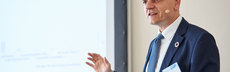 Prof. Dr. Günther SchuhBei Elektromobilität ist Umdenken Trumpf Der Kampf gegen den Klimawandel erfordert auch von der Automobilindustrie ein Umdenken. Prof. Dr. Günther Schuh, Experte für Produktionssystematik und Entwickler einer wettbewerbsfähigen Generation von Elektroautos, zeigte, dass noch viel zu tun bleibt.